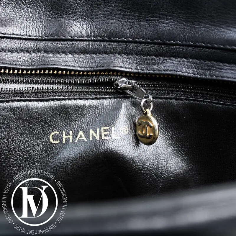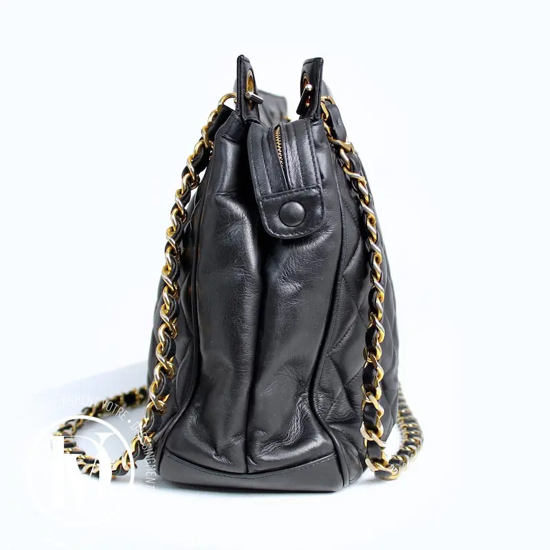 Cabas matelassé vintage en cuir noir – Chanel